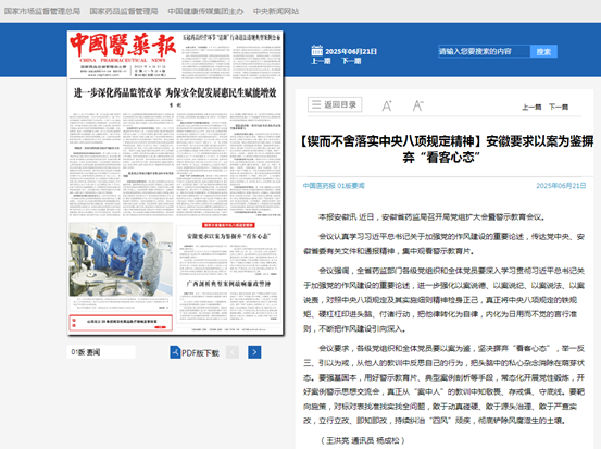 中国医药报  01版  要闻  2025年06月21日